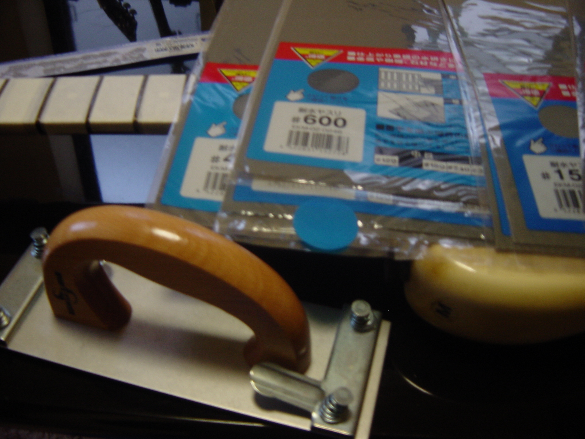 製のものさしですね)、紙やすりにハンドサンダー。すべて
